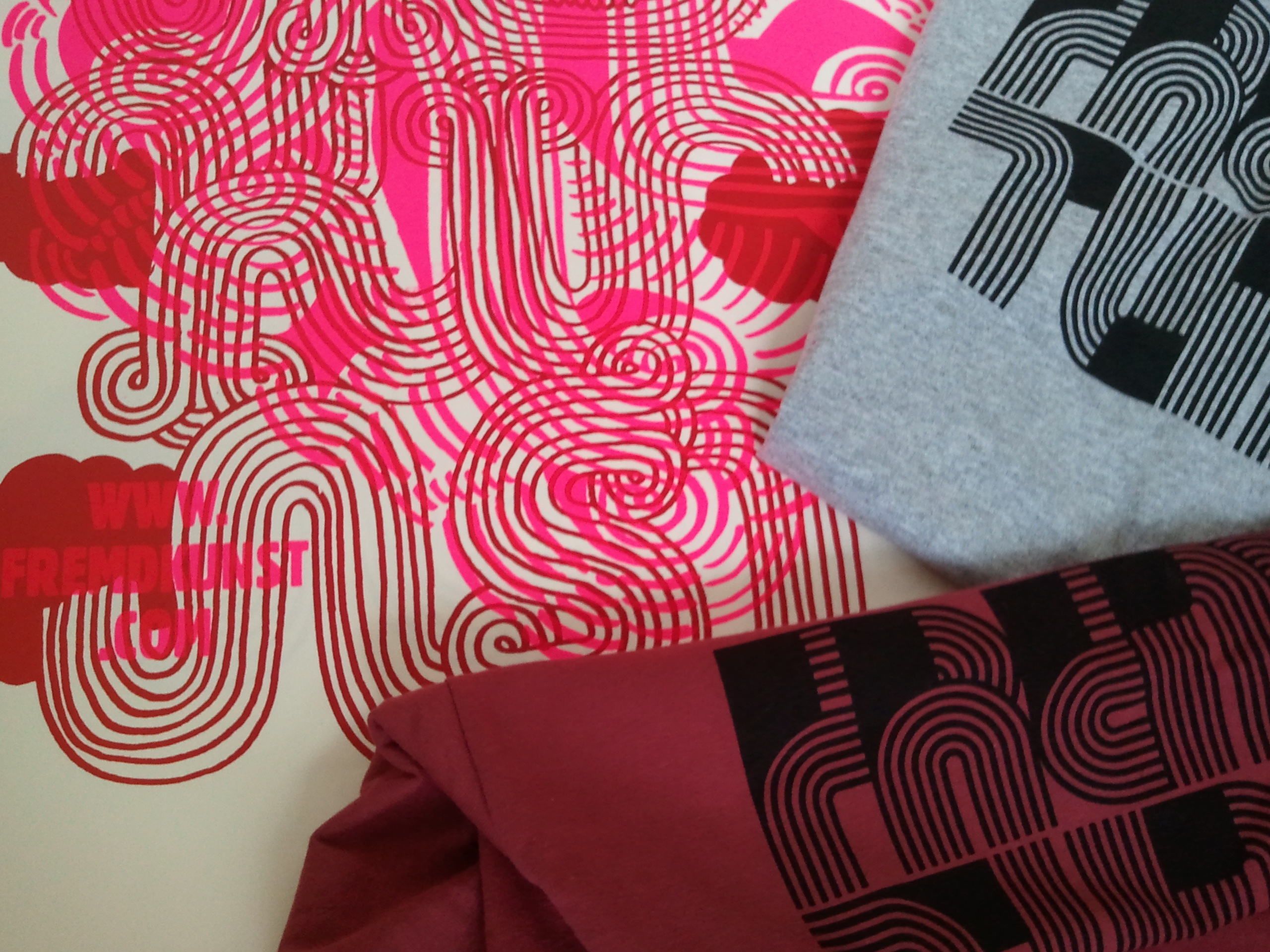 Mister Adam made some great silckscreen Fremdkunst prints for Fremdtunes and these are for sale now for only €15,- (excluding forwarding-charges). Also, the first few ‘testpressings’ of Fremdtunes shirts arrived. Send us an e-mail if you’d like to get more information on these…