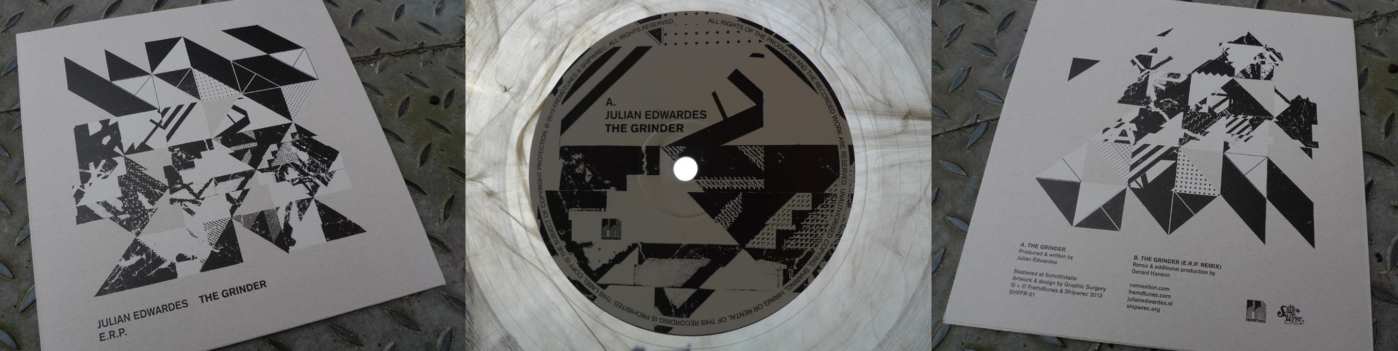 Dutch label Shipwrec and Fremdtunes cast off for uncharted waters, setting sail to proudly introduce the fresh new release ‘The Grinder’ by Julian Edwardes! Julian Edwardes is a Dutch artist that bends the limitations of hiphop and bass music, his first outing on vinyl takes elements of these sounds and twists them into a new form. The title track (previously released digitally on ‘PARAGON‘) judders and shakes into life with a controlled tempo adding gravity to the mix. Sombre notes drop to create a melancholic muscular beast. The flip sees E.R.P. aka Gerard Hanson aka Convextion flying in from Texas on remix duty. The rougher edges of the original are cleaned by reverberating arpeggios before a terse broken beat lands. Hanson weaves his magic, a lush melody of IDM depth descends to elevate this remix into something sublime. Something special from Shipwrec and Fremdtunes…